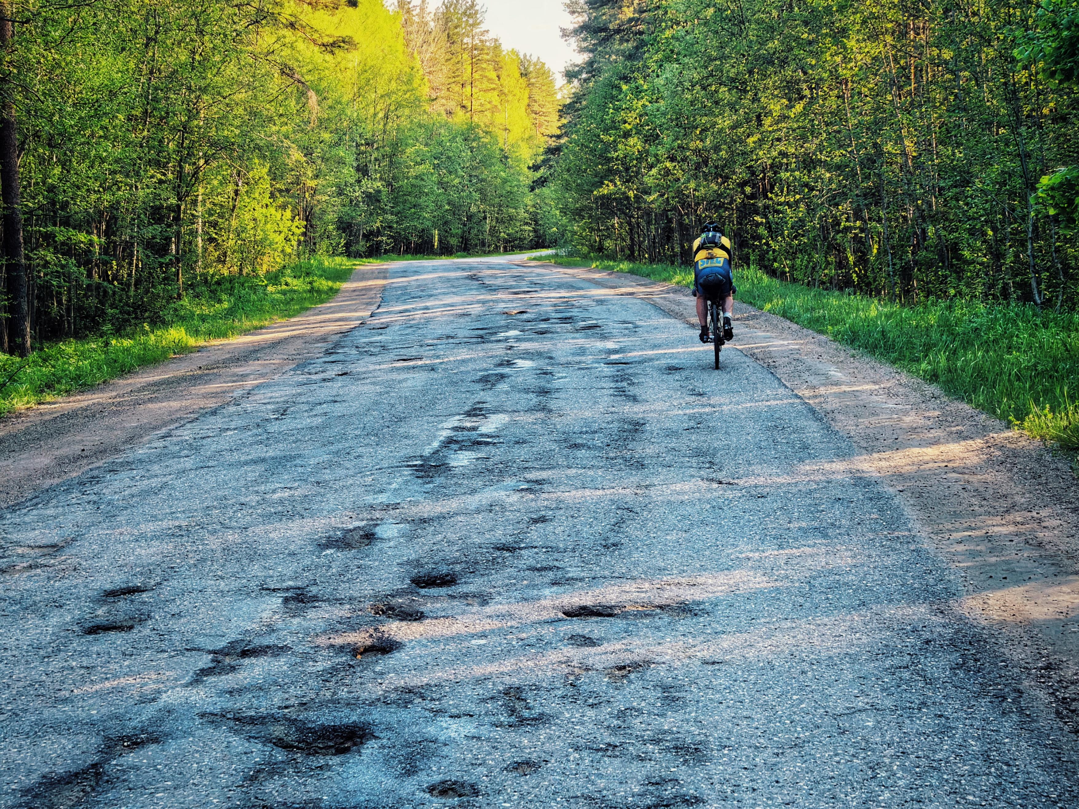 После КП начался холмистый участок и было тревожно за колени Володи. Тем более, что после манипуляций с цепью, она очень сильно натянулась и крутить педали ему было очень тяжело. Но шикарный рассвет на КП5 (307 км) в Окуловке мы встретили вместе.